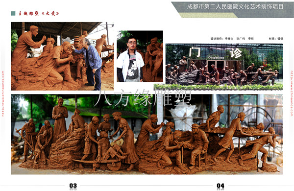 四川八方緣景觀雕塑藝術有限公司是以規劃,設計,制作為主的文化產業公司,具備專業的設計團隊,專注于寺院規劃設計,雕塑工程設計。主營宗教雕塑,城市雕塑,地產雕塑,銅裝飾、石材雕塑,金屬雕塑、不銹鋼雕塑、玻璃鋼雕塑、浮雕雕塑、砂巖雕望、人物雕塑、校園雕塑、歐式雕塑、工程護欄,傳統雕塑??偛课挥?ldquo;新中國休閑之都”四川成都,占地面積10000米。